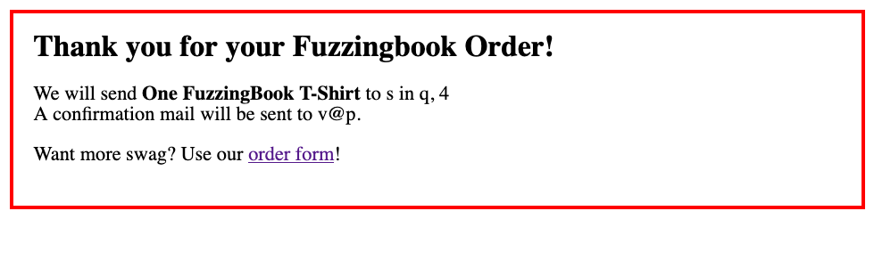 Running the fuzzer again and again will eventually cover these expansions too, leading to letter and digit coverage within the order form.